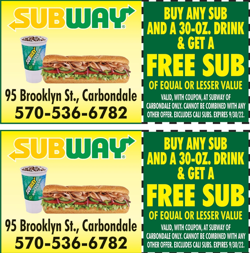 BUY ANY SUB AND A 30 OZ DRINK U0026 GET A FREE SUB OF EQUAL OR LESSER VALUE Online Printable Coupons USA Local Free Printable Shopping Coupons