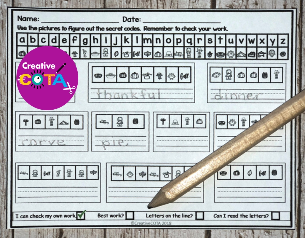 Thanksgiving Kindergarten Or 1st Grade Literacy Writing Secret Code Activities And Worksheets