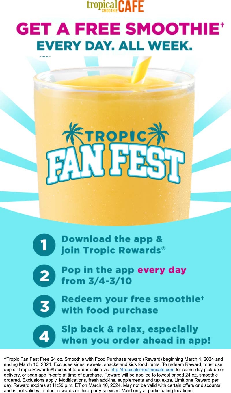 Free Smoothie 2 7p The 17th At Tropical Smoothie Cafe Tropical