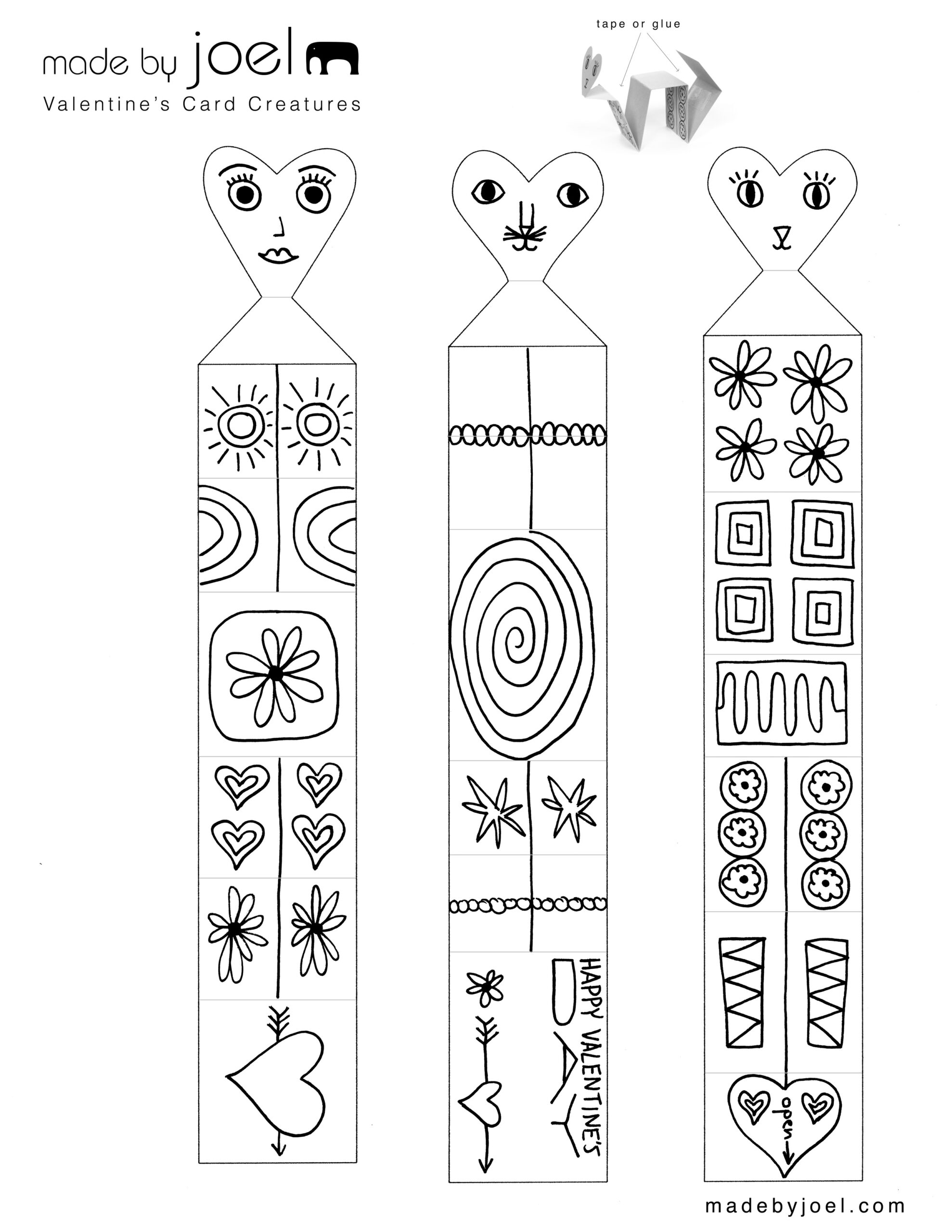 Valentine s Card Creatures Kids Craft Printable Made By Joel